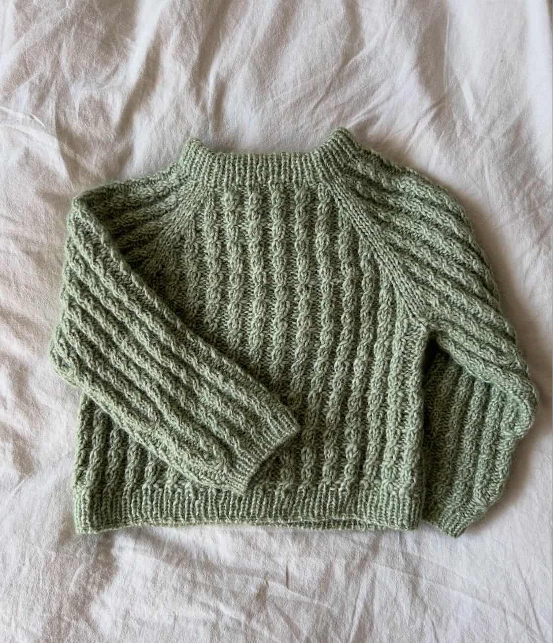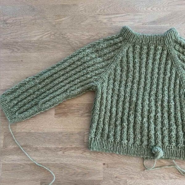 Bille Sweater Mini er en enkel og begyndervenlig sweater til de mindste, strikket med et fint og gennemgående snoningsmønster. Sweateren strikkes oppefra og ned med raglanudtagninger, som former bærestykket. Når arbejdet er delt til krop og ærmer, strikkes delene færdige hver for sig og afsluttes med klassiske ribkanter.